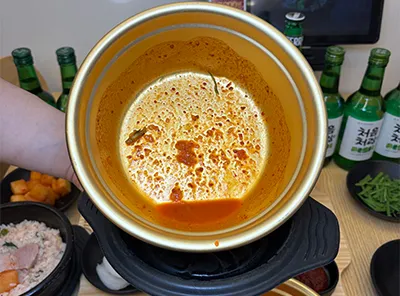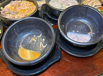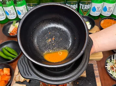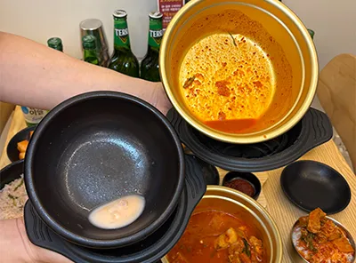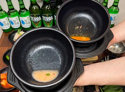 진짜 뚝배기 맛집을 가면 다들 뚝배기를 기울여서